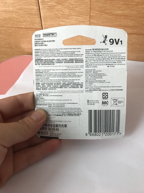Giới thiệu Pin 9v Alkaline ENERGIZER 522/BP1 vì 1 viên