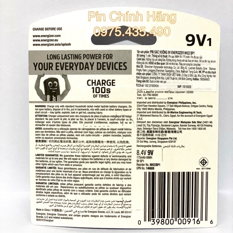 Thiết Bị Điện Gia Dụng > Pin || Pin 9V Sạc Energizer NH22 BP1 175mAh Vỉ 1 ViênCòn hàng
