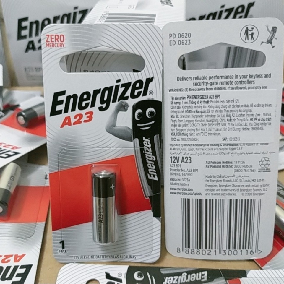 Pin A23 Energizer 12V là dòng pin chuyên dùng cho các thiết bị điều khiển remote cửa cuốn, chuông cửa nhà và 1 vài thiết bị điều khiển cần công suất cao và điện áp lớn. Là một trong những mã pin được sử dụng phổ biến trên thị trường hiện nay.