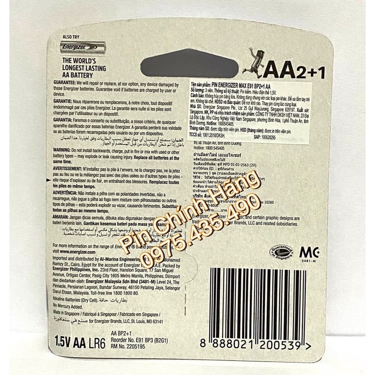Thiết Bị Điện Gia Dụng > Pin || Pin AA Energizer Max Hàng Chính Hãng 1 Vỉ 3 Viên E91BP2+1Còn hàng