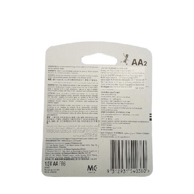 Pin AA Energizer Ultimate Lithium L91 vỉ 2 viên chính hãngLoại pin : pin Lithium
