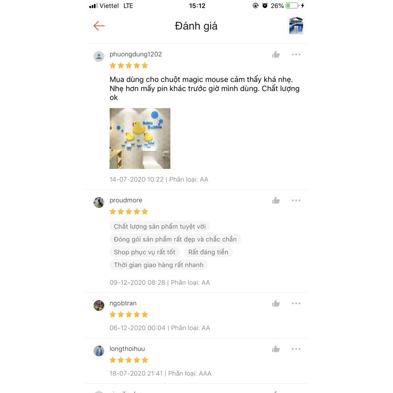 Các mã cùng kích thước : AA, LR6, AM3, E91, MN1500, R6, UM3