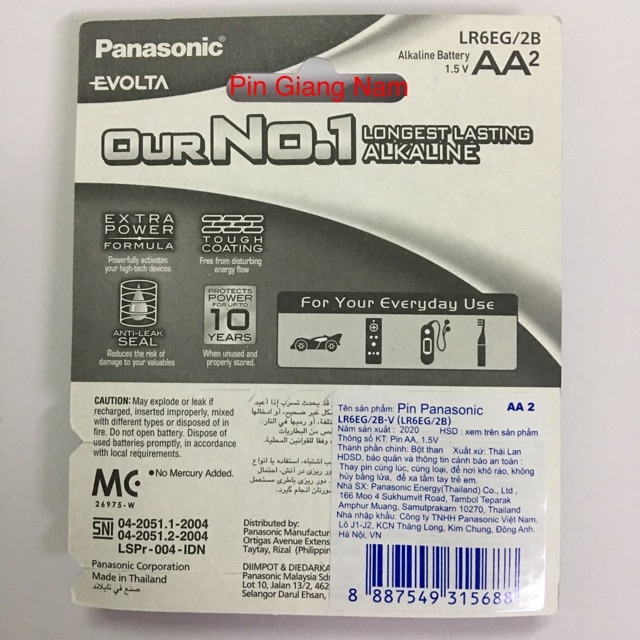 Giới thiệu Pin AA Panasonic Evolta LR6EG/ Pin Panasonic tiểu Evolta vỉ 2 viên