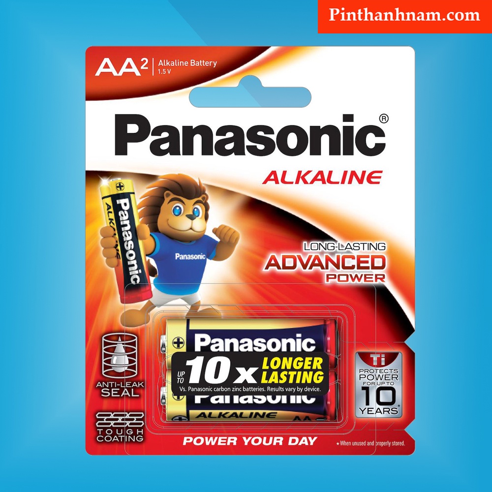 Là loại pin Kiềm chất lượng cao, sử dụng bên hơn các loại pin thông thường gấp nhiều lần. Pin kiềm Panasonic mang lại thời gian sử dụng lâu dài cho những thiết bị dùng hàng ngày và có nhu cầu về hiệu điện thế cao như máy đĩa, máy ảnh số, máy đo huyết áp ....Thời gian lưu trữ không bị giảm điện thế của pin là 10 năm.