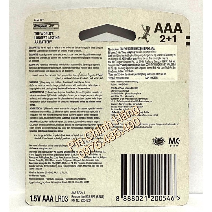 Giới thiệu Pin AAA Energizer Chính Hãng DKSH 1 Vỉ 3 Viên E92BP3