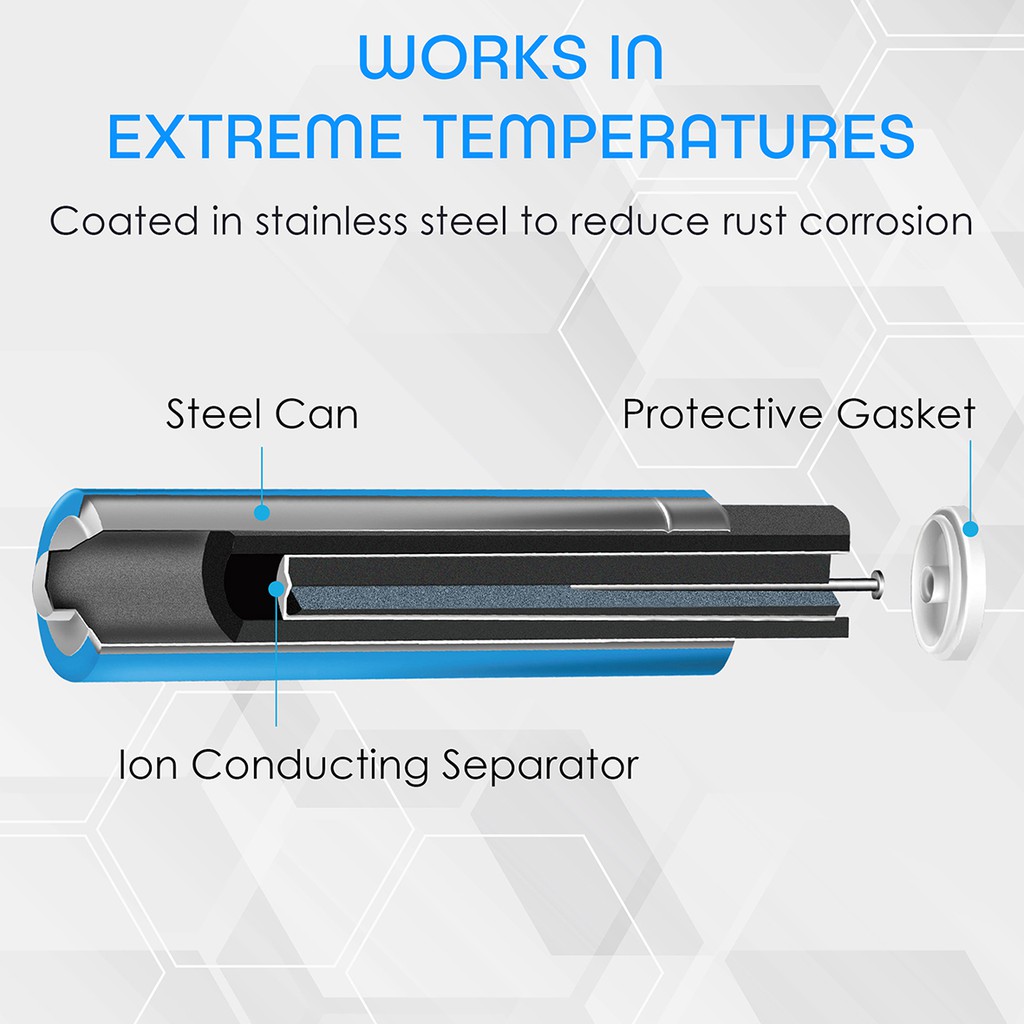 ULTRA ALKALINE ( Đặc điểm cấu tạo ) Năng lượng pin tuổi thọ pin kéo dài 6 - 9 lần so với các dòng pin carbon thông thường. Thời hạn sử dụng 10 năm ( 7 năm đồi với loại pin 9V ) Có thể hoạt động ở nhiệt độ cực cao. Thủy ngân và cat mi ( cadmium ) không chì. Thiết kế bên trong pin có lớp ngăn kép chống rò rỉ nên sẽ không có tình trạng chảy nước ra ngoài môi trường. ULTRA ALKALINE ( đổi mới công nghệ ) Tăng lượng EMD ( mangan dioxide ) trong thân pin để tăng hiệu suất hoạt động của pin. Thân pin sử dụng( công nghệ SCM ) sử dụng vật liệu siêu dẫn điện cho dung lượng cao đến kinh ngạc. Sử dụng vật liệu kẽm công nghệ mới có cấu trúc lỏng lẻo đảm bào phản ứng và mang lại khả năng xả năng xả điện tốt hơn. Chất phụ gia đặc biệt làm tăng đặc tính hoạt động lâu dài của vật liệu. Phần nắp đuôi sử dụng vòng đệm nilon có hiệu suất chống rò rỉ tốt hơn. Có khả năng kháng kiềm mạnh hơn, chống lão hóa vật liệu và cho ra hiệu suất an toàn vượt trội.