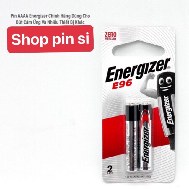 Pin Energizer AAAA alkaline 1.5V Pin Energizer AAAA được làm từ chất liệu Alkaline (kiềm ). Là hãng pin của Mỹ, được xếp vào dòng pin chất lượng số 1 trên thế giới hiện nay. Nói đến pin Energizer gần như những người dùng ai cũng biêt, là một trong những hãng pin đầu tiên của nước ngoài vào thị trường việt nam. Hiện nay hầu hết các siêu thị đều đang bán pin Energizer.Pin Energizer AAAA Với khả năng tích điện lớn, dòng điện ổn định, thời gian lưu trư điện lên đến 10 năm đang dần thay thế các dòng pin chất liệu cacbon với công xuất nhỏ.