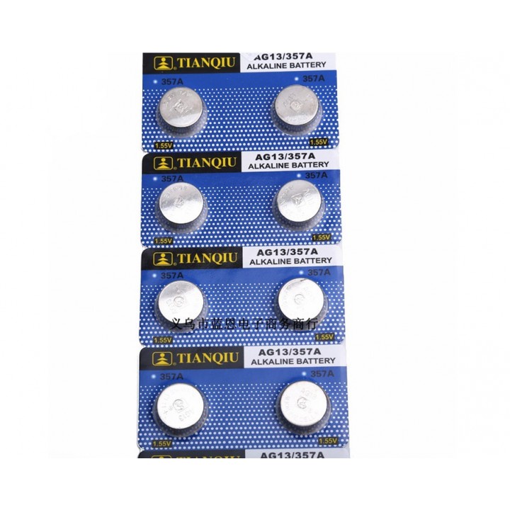 Pin AG13 Xài Cho Đèn Pin Laser - Đồ Chơi Trẻ Em - Điều Khiển - Máy TínhPin AG13 Tianqiu hay còn gọi là pin cúc áo, thường dùng cho các thiết bị như đồ chơi trẻ con, điều khiển, máy tính,…