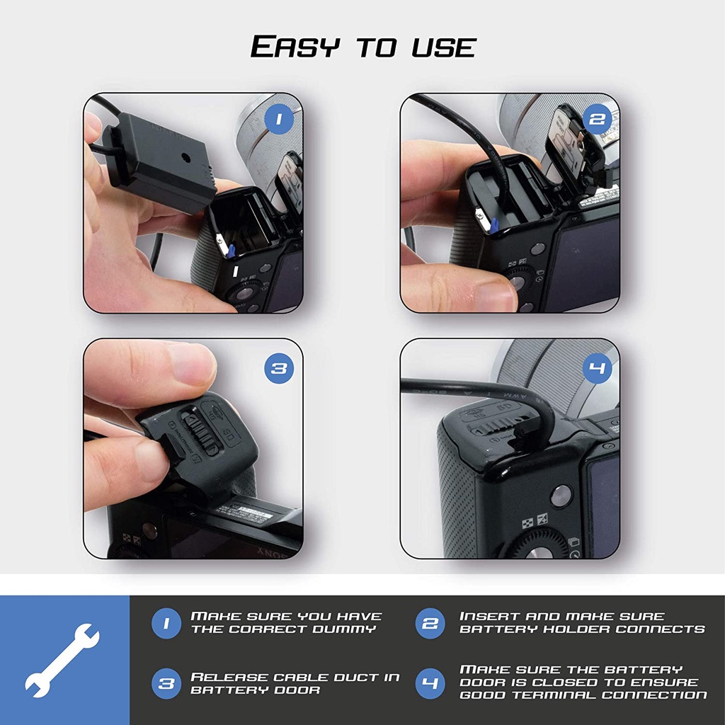 Trong mục này chúng tôi xin được giới thiệu các cách sử dụng pin dummy Sony NP-FZ100, tùy thuộc vào nhu cầu sử dụng để mua sản phẩm cho phù hợp: