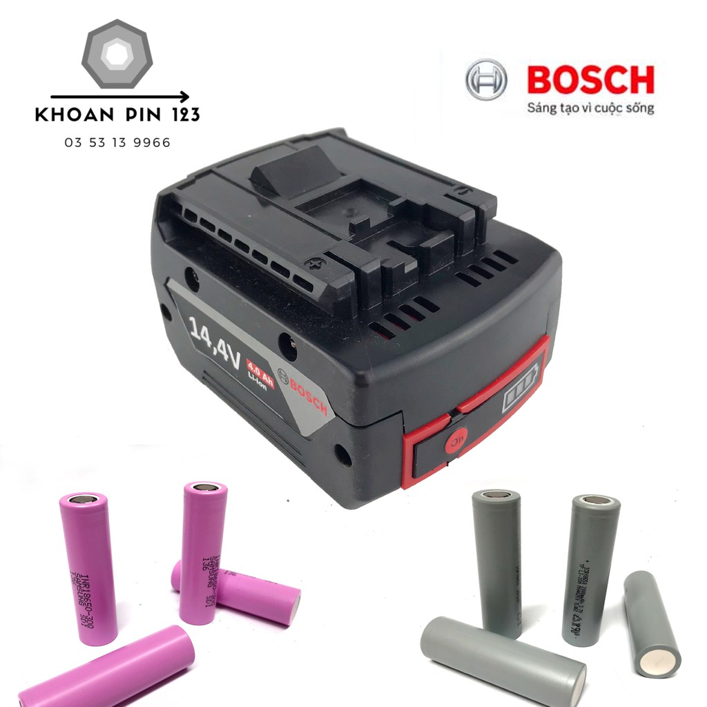 Pin Bosch 14.4V - 4Ah 5Ah 6Ah Li-ion, có đèn Led báo dung lượng pin (pin đóng)