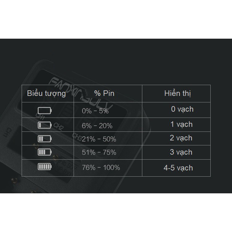 Thương thích với các dòng thiết bị : Sony NP‐F975, NP‐F970, NP‐F960, NP‐F950 và Sony DCR‐VX2100, DSR‐PD150, DSR‐PD170, FDR‐AX1, HDR‐AX2000, HDR‐FX1, HDR‐FX7, HDR‐FX1000, HVL‐LBPB, HVR‐HD1000U, HVR‐V1U, HVR-Z1P, HVR‐Z1U, HVR‐Z5U, HVR‐Z7U, HXR‐MC2000U, MVC‐FDR1, NEX‐EA50UH, NEX‐FS100U, NEX‐FS700U