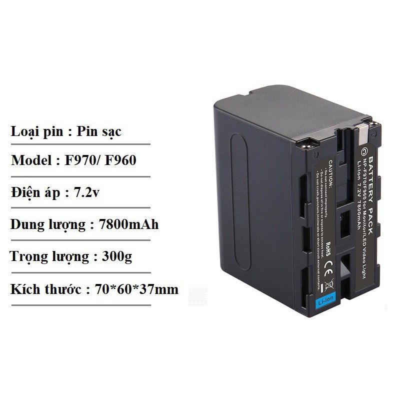 Pin máy quay phim NP-F970 NP-F960 dung lượng 7800mAhLoại pin : Pin sạc