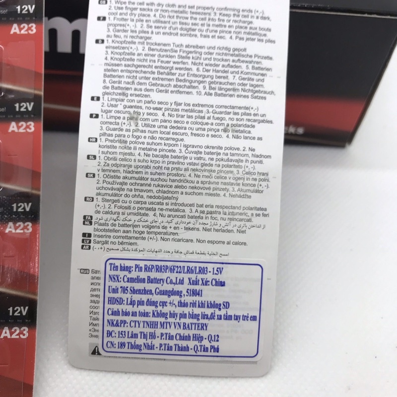 Vĩ 5 Viên Pin chuông 12V CAMELIONMã sp: