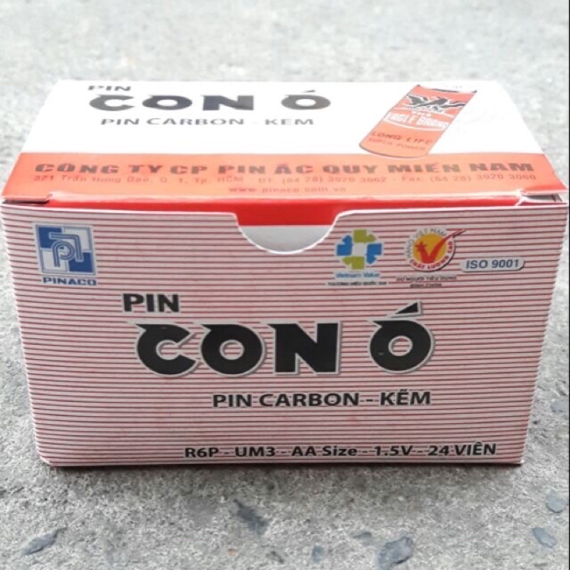 Pin tiểu Con Ó AA 1.5V của Công ty Cổ phần Pin Ắc Qui PINACO Miền Nam được sử dụng rộng rãi trong đèn pin, đèn flash, remote, đồng hồ, ..Đóng gói: 1 Hộp/ 24 Viên.
