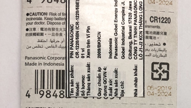 Thiết Bị Điện Gia Dụng > Pin || Pin CR1220 Panasonic 3V Lithium Vỉ 1 ViênCòn hàng