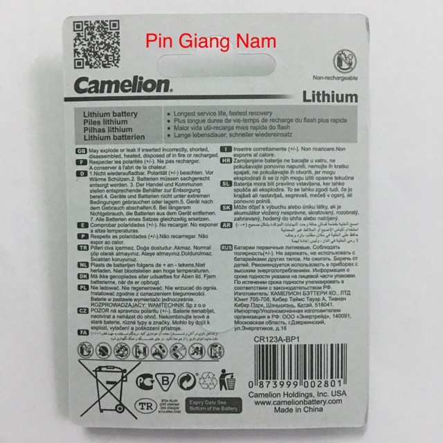 Giới thiệu Pin CR123 Camelion 3V vỉ 1 viên