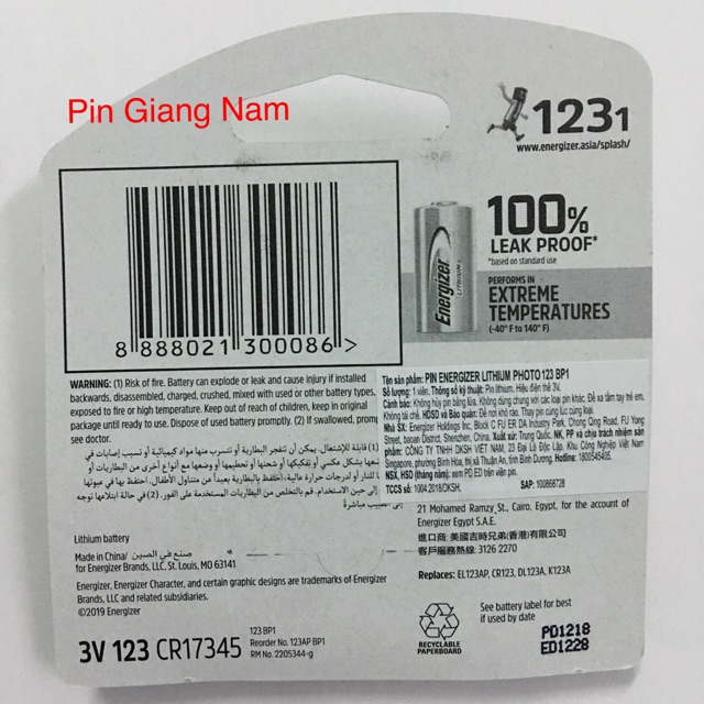 Giới thiệu Pin CR123 Energizer 3V Lithium Battery Chính Hãng Vỉ 1 Viên