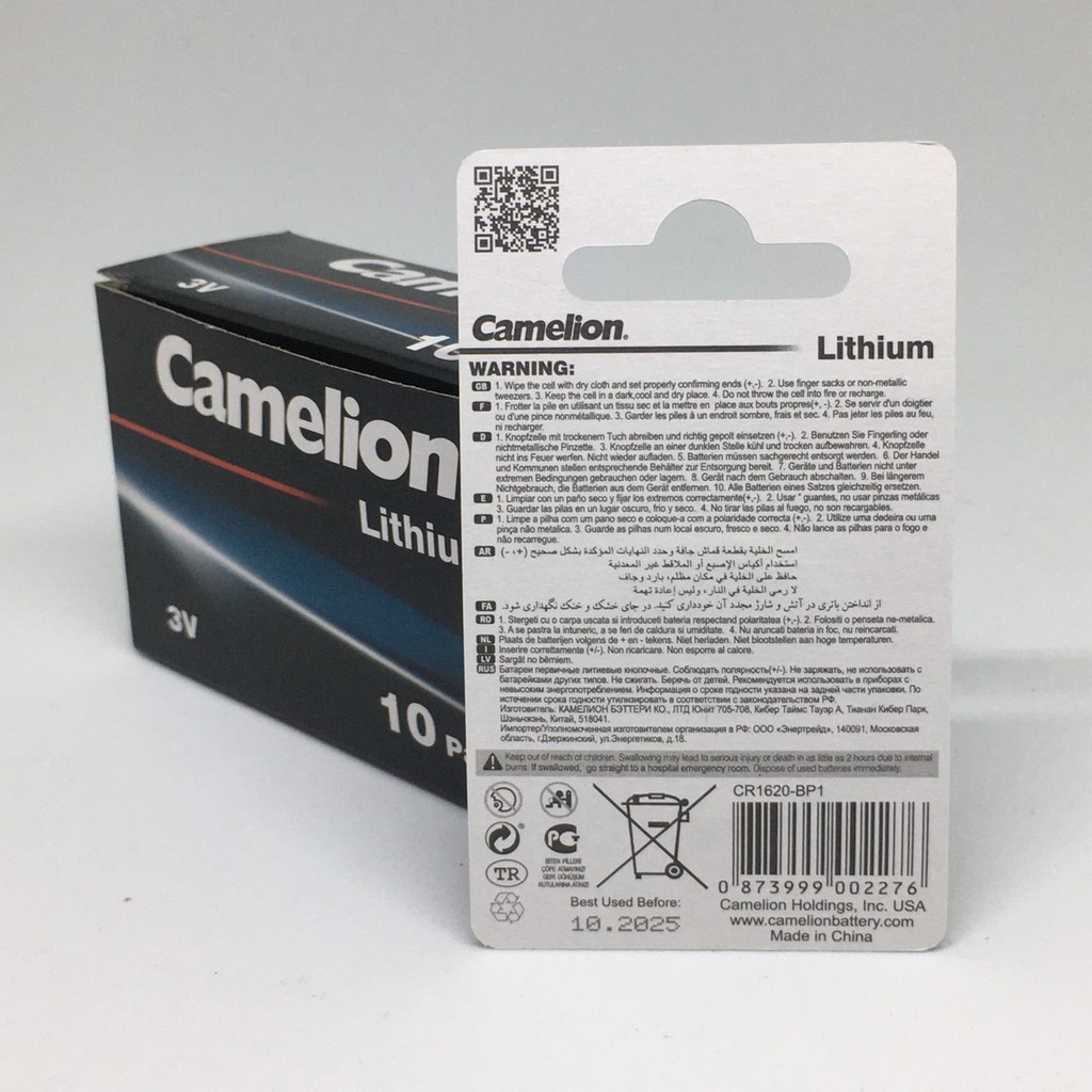 - Pin CR1620 Camelion 3V vỉ 1 viên chính hãng- Kích thước tiêu chuẩn : đường kính 16mm * độ dày 2,0mm