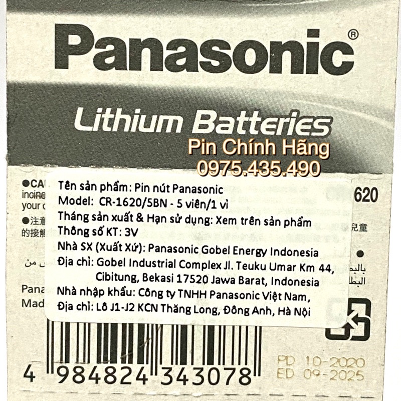 Giới thiệu Pin CR1620 Panasonic Lithium 3V Vỉ 5 Viên Hàng Chính Hãng Made in Indonesia
