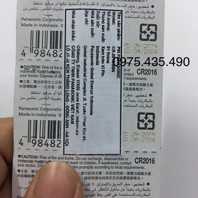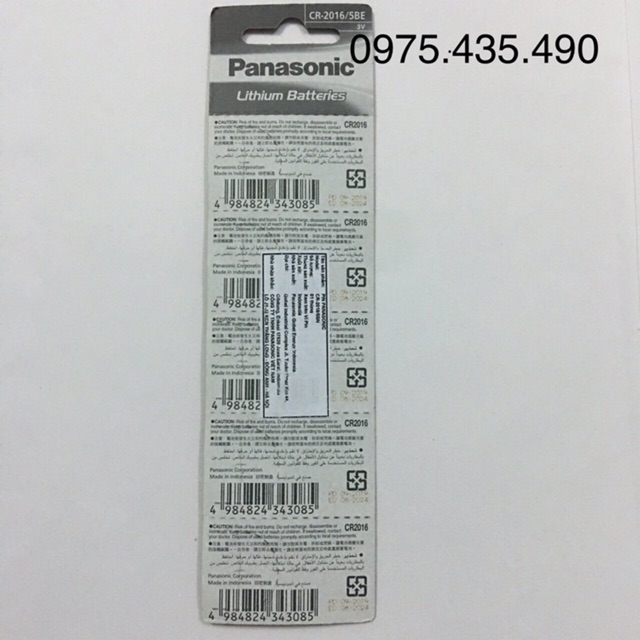 Pin CR2016 Panasonic sản xuất trên dây chuyền công nghệ Nhật Bản đóng gói tại Indonesia.
