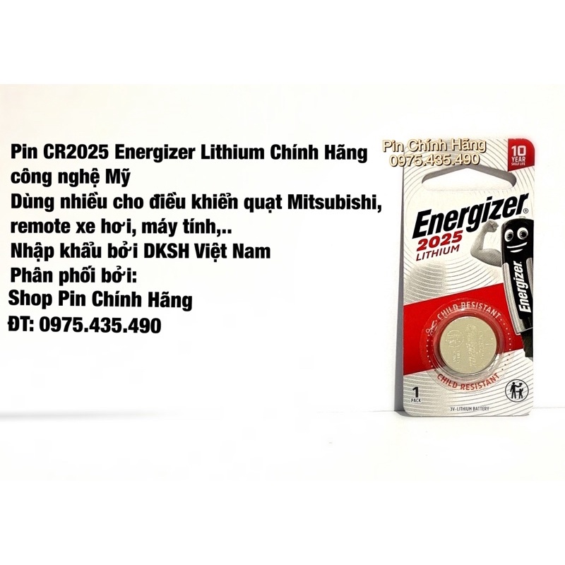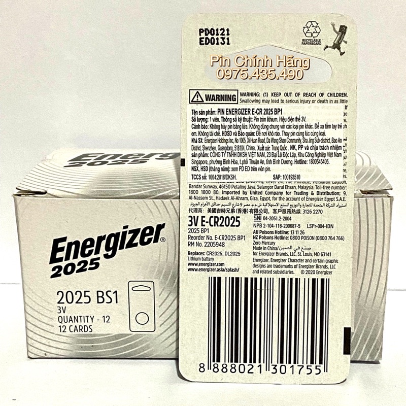 Pin CR2025 Energizer Lithium 3V Chính Hãng Vỉ 1 Viên