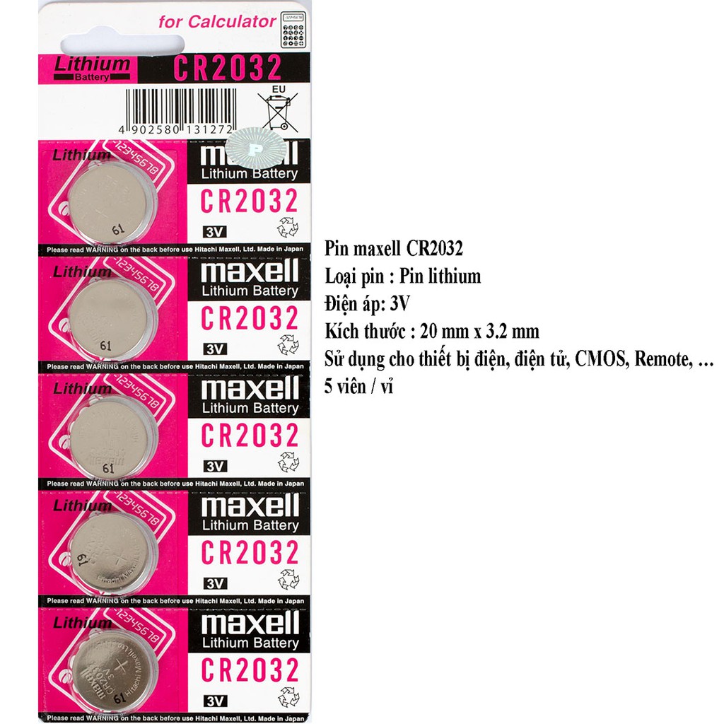 Nhà cửa & Đời sống > Dụng cụ & Thiết bị tiện ích > Dụng cụ > Khác || Pin CR2032 - 3V - 5 viên = vỉCòn hàng