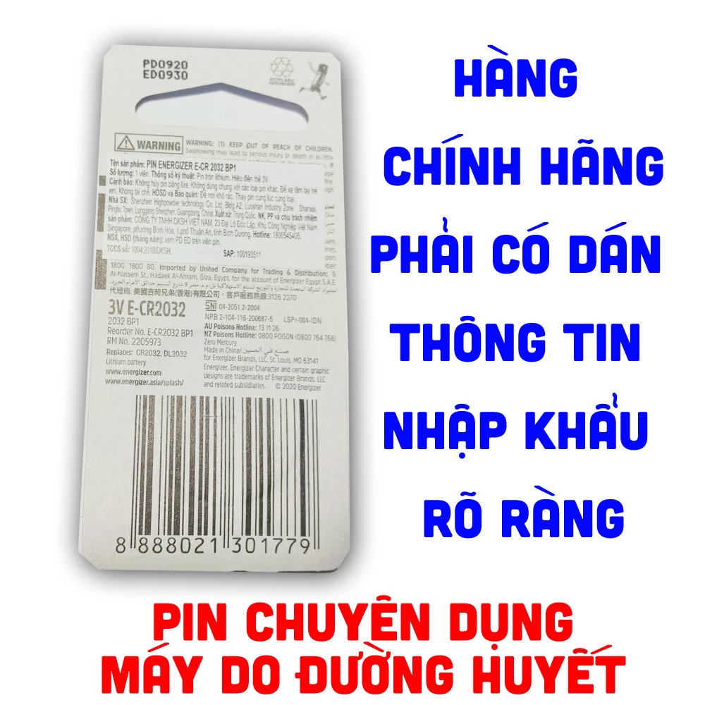 PIN CR2032 ENERGIZER DÙNG CHO MÁY ĐƯỜNG HUYẾTPIN NHẬP KHẨU TỪ CÔNG TY DKSH (CÔNG TY DUY NHẤT ĐƯỢC NHẬP KHẨU HÃNG ENERGIZER CHÍNH HÃNG)