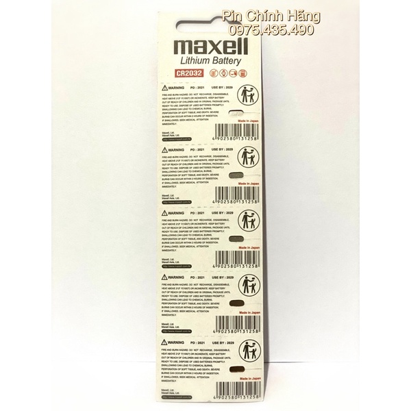 Pin CR2032 Maxell 3V Lithium Chính Hãng Vỉ 5 Viên Made in Japan