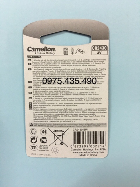 Pin CR2430 Camelion 3V Lithium Chính Hãng Vỉ 1 Viên
