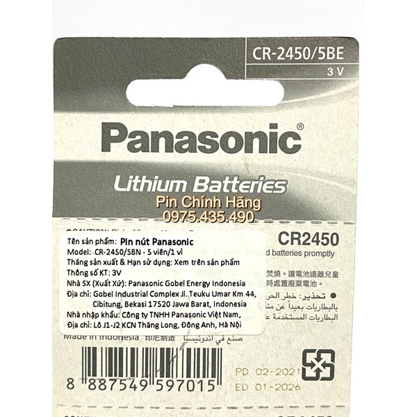 Thiết Bị Điện Gia Dụng > Pin || Pin CR2450 Panasonic 3V Lithium Chính Hãng Vỉ 5 ViênCòn hàng