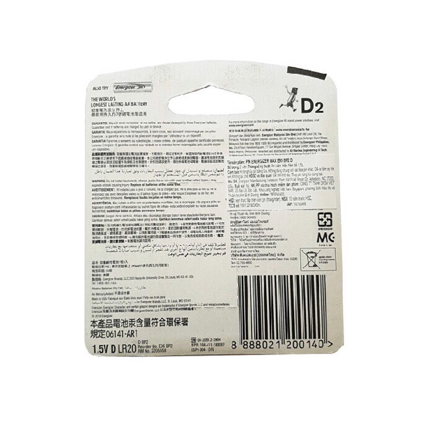 Giới thiệu Pin Đại D Alkaline ENERGIZER Max E95 BP2 Chính Hãng Vỉ 2 Viên