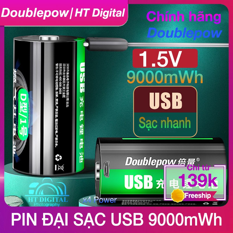 Cameras & Flycam > Phụ kiện máy ảnh > Bộ sạc pin || Pin đại sạc cổng USB Doublepow size D 1.5V 9000mWh Pin Sạc Cho Bếp Ga, Đèn Pin, Thiết Bị Công NghiệpCòn hàng