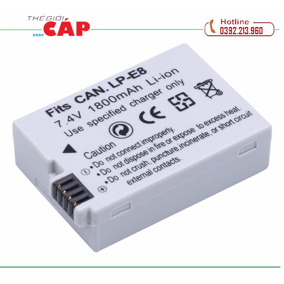Pin Model / Model: Đối với Caon LP-E8Dung lượng pin / Dung tích: 1800mAh