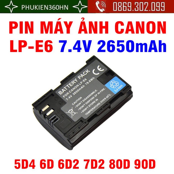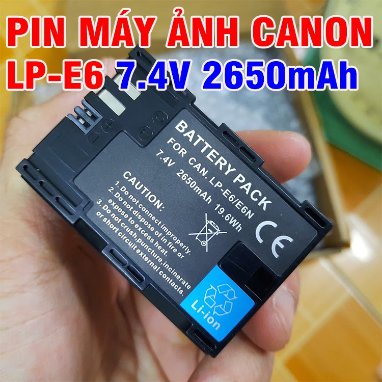 -Pin máy ảnh LP-E6 được thiết kế cho dòng máy ảnh 60D, 70D, 6D, 7D, 5D MARK II, 5D MARK III, 7D II ...- Pin có dung lượng 2650mAh, điện áp 7.2V, đáp ứng nhu cầu chụp và ghi hình trên máy ảnh của bạn. Lõi pin Li-ion cho thời gian sử dụng lâu hơn so với các loại lõi pin thông thường, cho phép bạn sạc xả nhiều lần