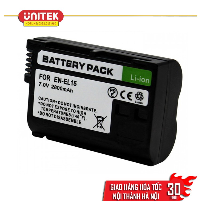 Pin Nikon EN-EL15 theo chuẩn pin Lithium ion, dung lượng 2800mAh dùng cho các loại máy ảnh Nikon D500, D600, D610, D7000, D7100, D750, D800, D800E, D810 dung lượng lớn cho thời gian sử dụng lâu hơn, có thể chụp lên đến 900 tấm hình với điều kiện bình thường. Pin Nikon EN-EL15 chính hãng Nikon được đảm bảo đạt chất lượng tốt nhất, tuổi thọ cao và an toàn cho thiết bị.