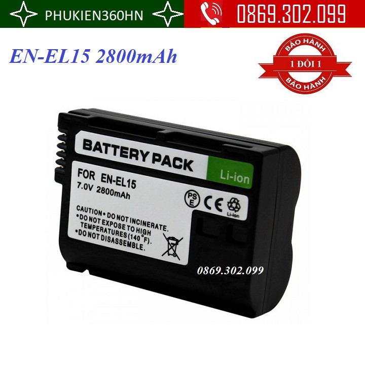 Pin Nikon EN-EL15 theo chuẩn pin Lithium ion, dung lượng 2800mAh dùng cho các loại máy ảnh Nikon D500, D600, D610, D7000, D7100, D750, D800, D800E, D810 dung lượng lớn cho thời gian sử dụng lâu hơn, có thể chụp lên đến 900 tấm hình với điều kiện bình thường. Pin Nikon EN-EL15 chính hãng Nikon được đảm bảo đạt chất lượng tốt nhất, tuổi thọ cao và an toàn cho thiết bị.