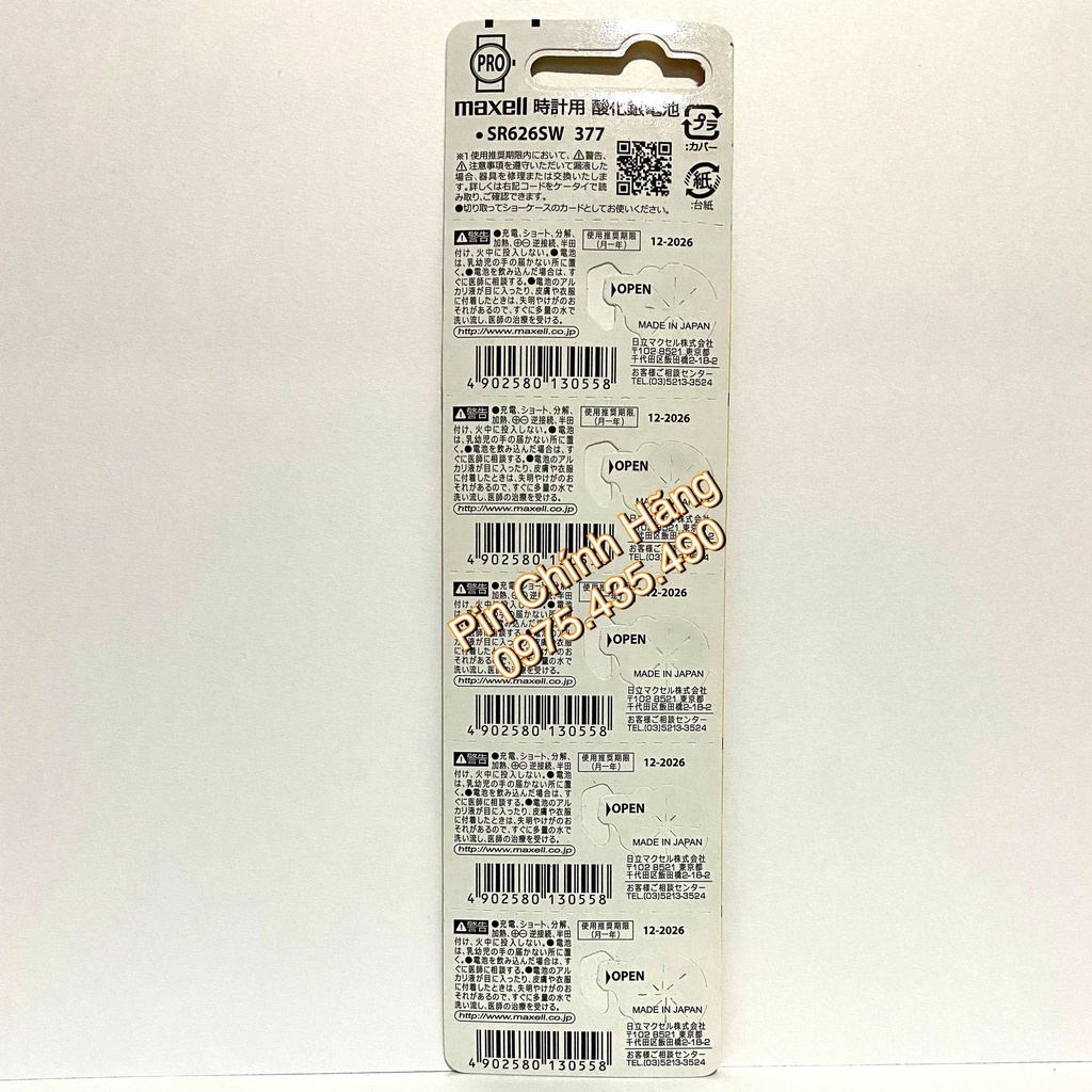 Thiết Bị Điện Gia Dụng > Pin || Pin Đồng Hồ Maxell SR626SW - 377 PRO Vỉ 5 Viên Hàng Chính Hãng Made in JapanCòn hàng