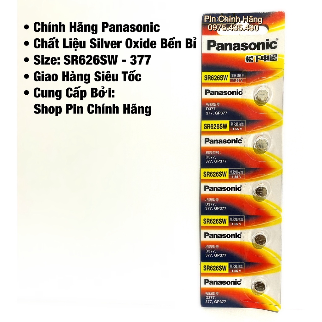 Pin Đồng Hồ Panasonic SR626SW ký hiệu số 377. Sản xuất trên dây chuyền công nghệ Nhật Bản.