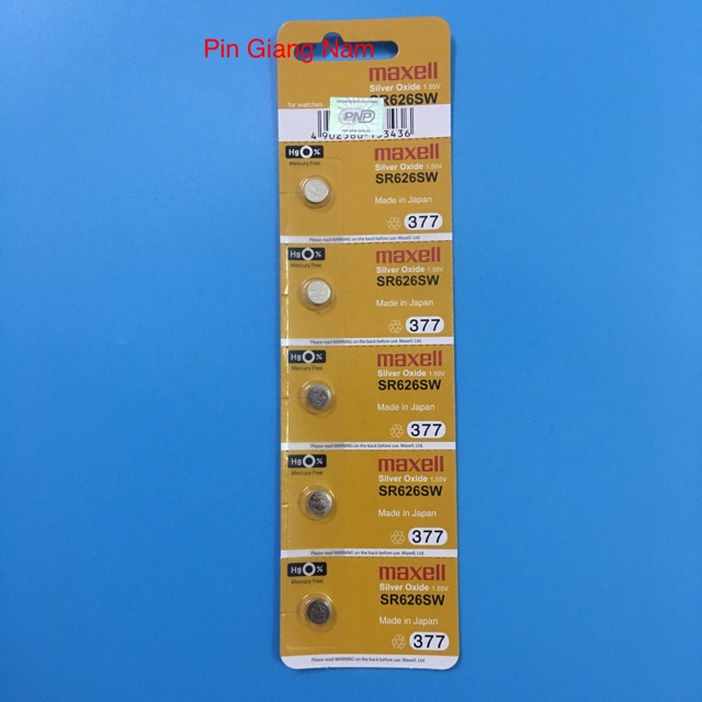 Pin đồng hồ SR626SW / Pin SR626SW 377 Maxell 1.55V vỉ 5 viên