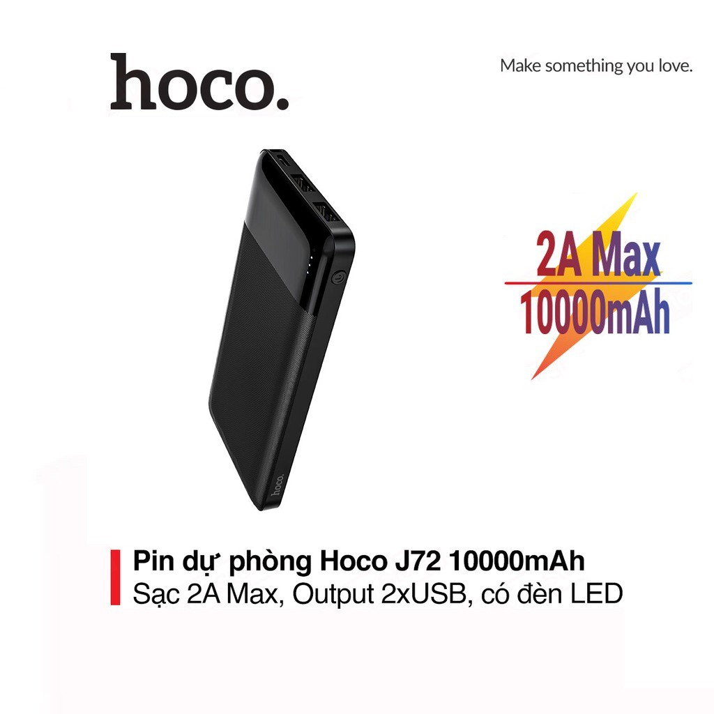 Pin dự phòng sạc nhanh 2A Hoco J72 tích hợp đèn LED dung lượng 10000mAh"Bảo hành: 12 tháng, 1 đổi 1 trong tháng đầu nếu lỗi do nhà sản xuất.