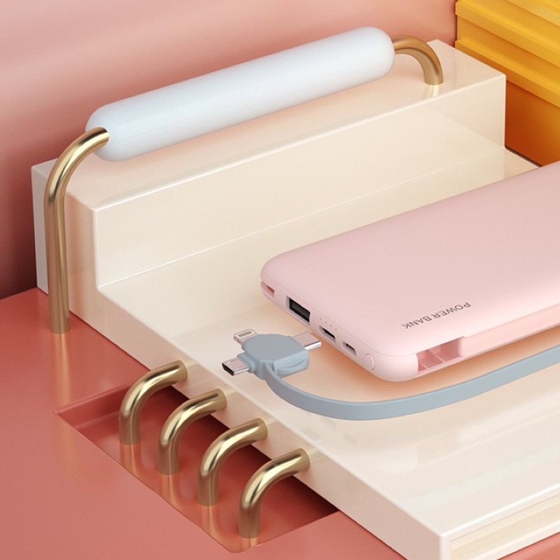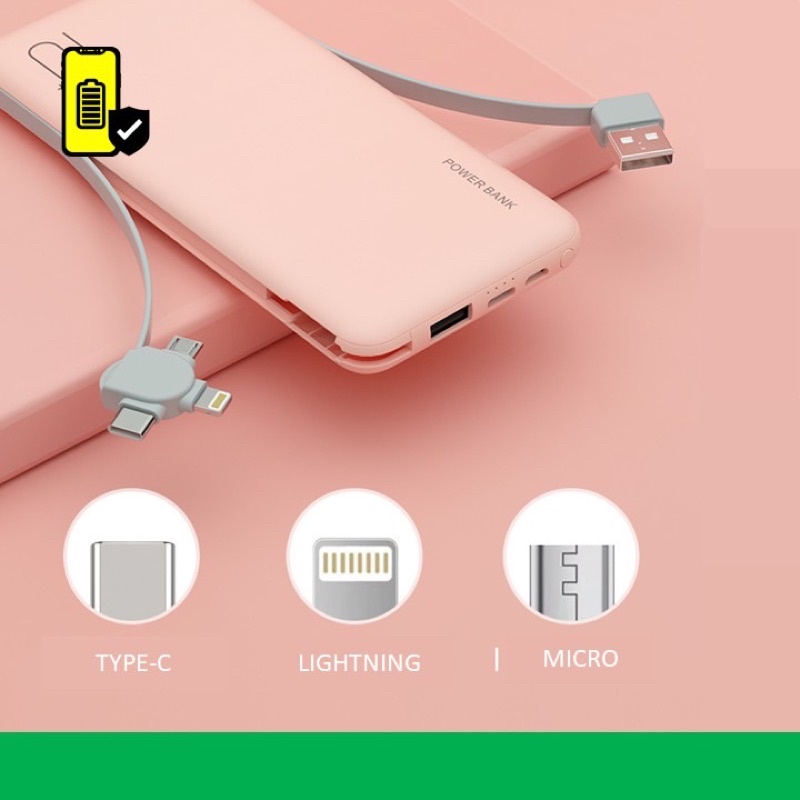- Do pin tích hợp cáp của 3 dòng lightning, micro usb, type-c ngay trên thân sạc nên bạn có thể sạc mọi lúc mọi nơi rất tiện mà không cần mang thêm một sợi cáp, điều này cũng làm giỏ hàng của bạn gọn gàng ngăn nắp hơn