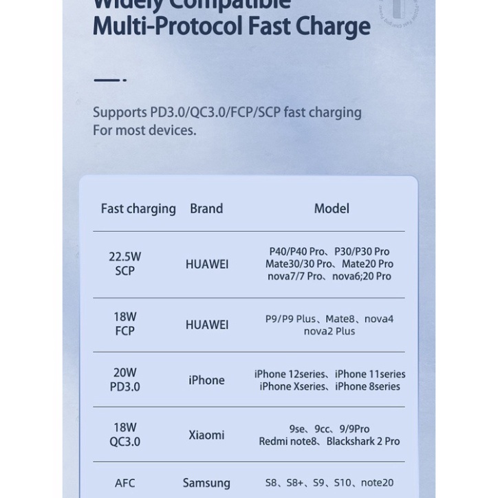 ĐẶC ĐIỂM NỔI BẬT:- Hổ trợ sạc nhanh QUICK CHARGE 3.0 18W, Super Charge 22.5W, PD 20W hổ trợ sạc nhanh cho các dòng iphone 8 X 11 12 và các dòng Android có hổ trợ Quick Charge, Super Fast Charge.