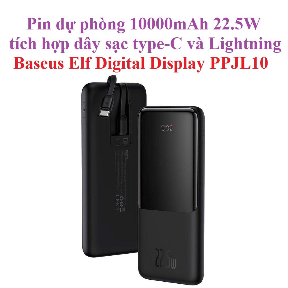 Điện Thoại & Phụ Kiện > Phụ kiện > Sạc dự phòng & Pin > Sạc dự phòng || Pin dự phòng 10000mAh 22.5W tích hợp dây sạc type-C và Lightning Baseus Elf Digital Display PPJL10Còn hàng