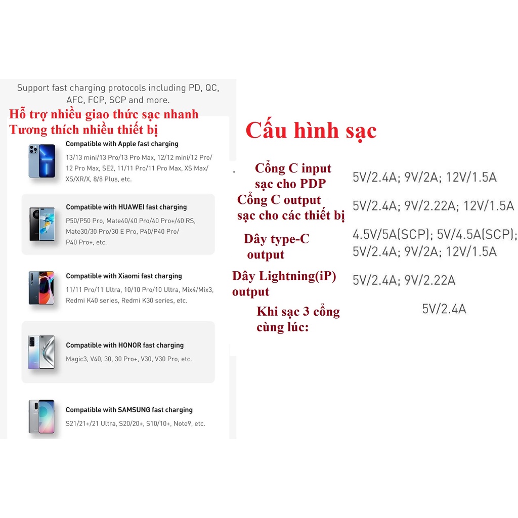 -Hỗ trợ nhiều giao thức sạc nhanh khác