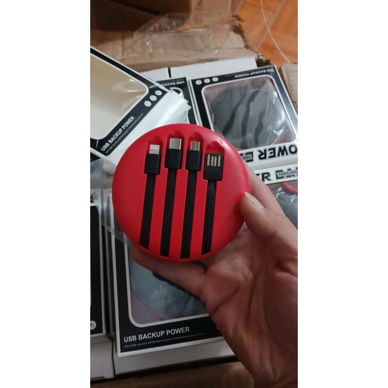 Hàng có sẵn (1t 145c)🔥Pin sạc dự phòng mini power bank kèm 4 đầu sạc thích hợp với các dòng máy của Android và iPhone ạ :b