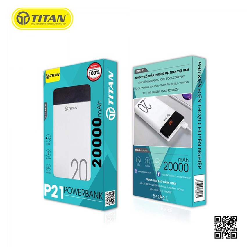 Sở hữu gam màu đơn giản là trắng và đen cùng thiết kế hoàn toàn bằng nhựa an toàn 100%, pin dự phòng Titan P21 20.000mAh rất phù hợp cho nhiều đối tượng sử dụng.