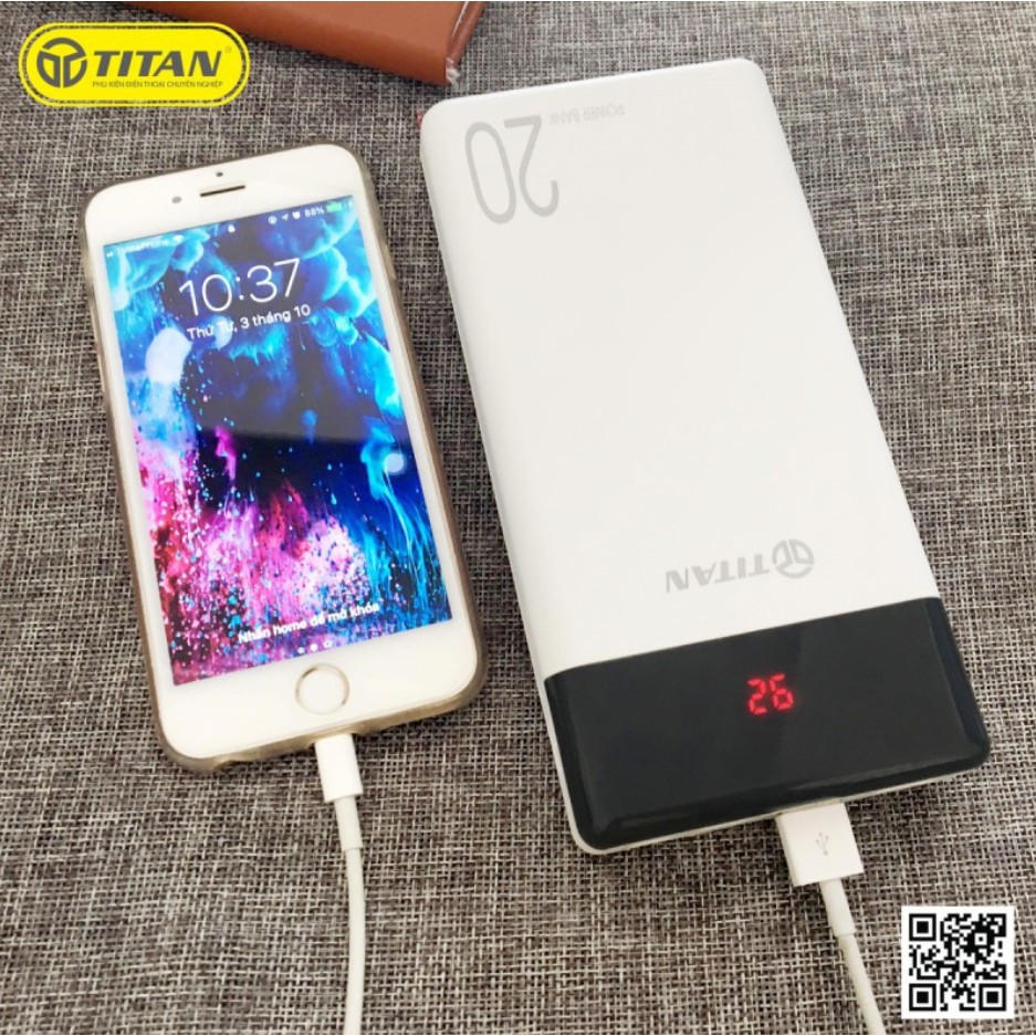 Pin dự phòng 20000 mAh - 3 đầu cắm sạc Type C / Lightning / Micro - Cổng hỗ trợ sạc nhanh - Titan chính hãng