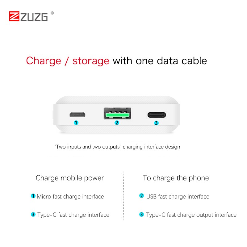 Pin dự phòng 20000mAh 18W J29PD Chính hãng ZUZGVN