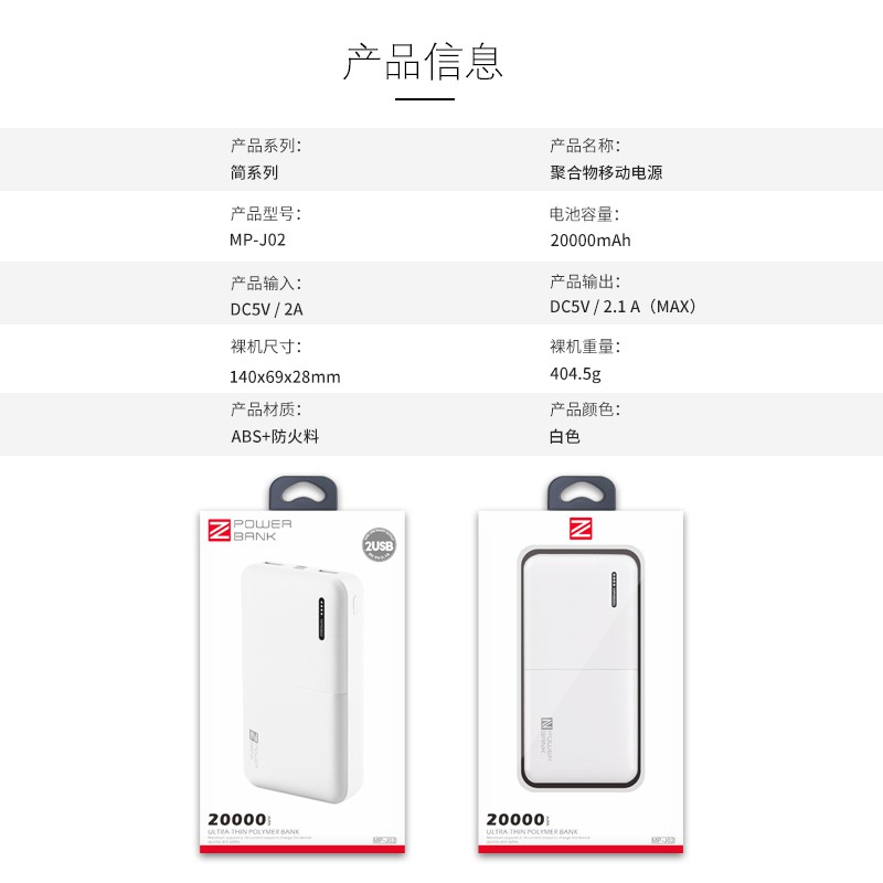 Điện Thoại & Phụ Kiện > Pin sạc dự phòng > 10000 - 20000mAh || Pin dự phòng 20000mAh - J02 chính hãng ZUZG Việt namCòn hàng