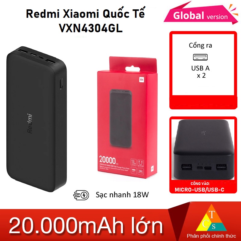 #Pin_dự_phòng_20000mAh_Redmi_Xiaomi_Quốc_Tế_VXN4304GL #sạc_dự_phòng #pin_sạc #tainghe #máy_cạo_râu #tông_đơ #Type_C #Micro_USB #USB_A #sạc_nhanh #10000mah #20000mah #chính_hãng #xiaomi #redmi #tcs